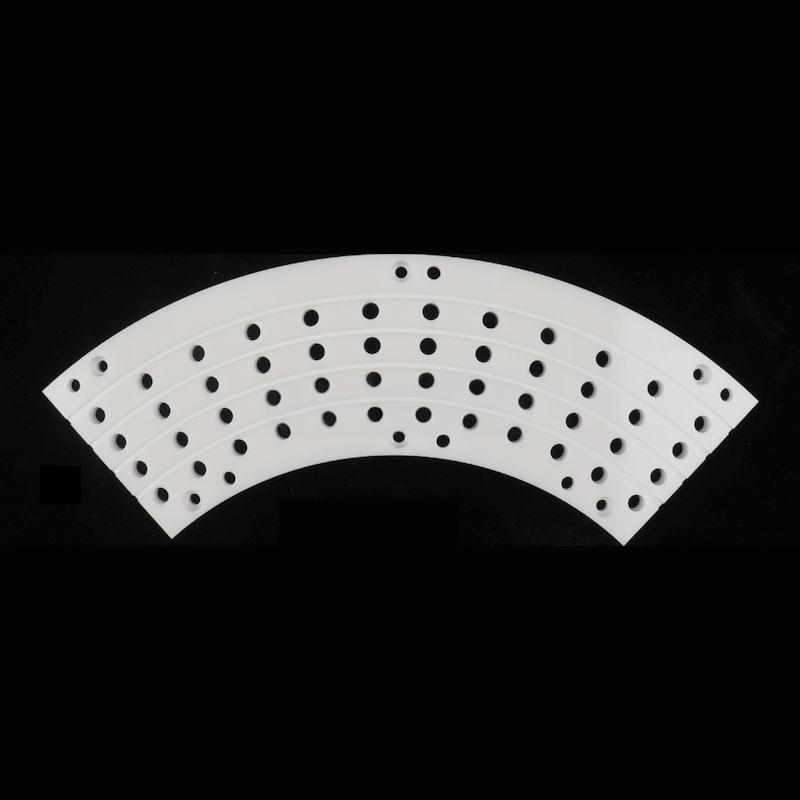Zirconia ceramic porous fan-shaped sheet is a functional ceramic component made by dry pressing and high-temperature sintering technology using high-performance nano zirconia powder. Its unique fan-shaped structure combined with uniformly distributed micrometer sized pores not only possesses the inherent high hardness, wear resistance, and corrosion resistance of zirconia ceramics, but also enables precise flow control, uniform distribution, and high-temperature medium filtration. This product is widely used in high-end manufacturing fields such as chemical catalysis, environmental dust removal, food and beverage machinery, and biomedicine.